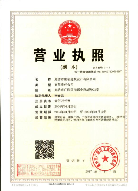 廊坊市世創(chuàng)建筑設(shè)計(jì)有限公司,原為廊坊市規(guī)劃設(shè)計(jì)院建筑工程設(shè)計(jì)所。成立于1997年,多年來本公司在社會(huì)各界人士的關(guān)心、支持下,不斷發(fā)展壯大。自2006年3月1日起具有國家建設(shè)部核準(zhǔn)的建筑工程乙級(jí)設(shè)計(jì)證書,證書編號(hào)為:A213006026。企業(yè)法人營業(yè)執(zhí)照,注冊(cè)號(hào):131003000011148 我公司自創(chuàng)建以來完成各類工業(yè)與民用建筑設(shè)計(jì)、咨詢項(xiàng)目共有三百五十多項(xiàng),建筑面積近三百萬平方米,工程所在地涵蓋廊坊、天津、北京等地區(qū)。并有...